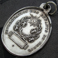 1900年代初期頃に製作された繊細に描かれた聖母マリアのレリーフが印象的なアンティークメダイです。