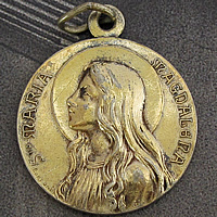 1900年代初期頃に製作された繊細に描かれたとても美しいマグダラのマリアのレリーフが印象的なシャンパンゴールドのアンティークメダイです。