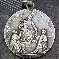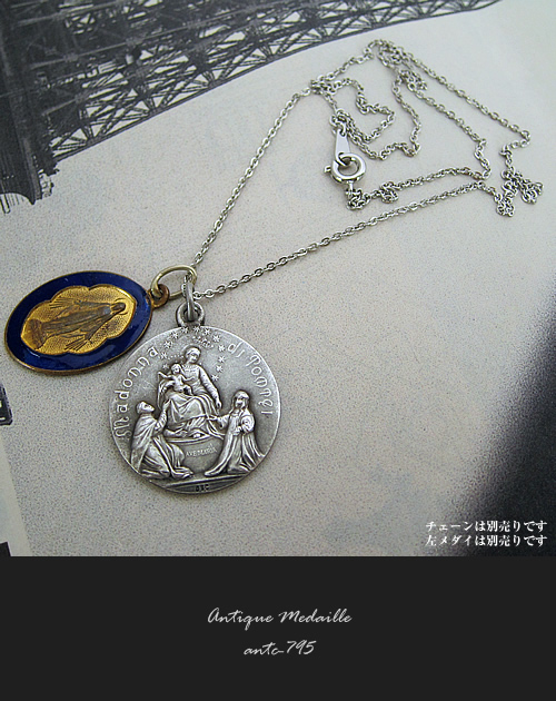 1900年代初期頃に製作された繊細に描かれた聖母子のレリーフ(AVE MARIA の刻印)がとても美しいアンティークメダイです。