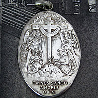 1900年代初期頃に製作された表裏ともに描かれた繊細な5人の天使のレリーフが印象的なアンティークメダイです。