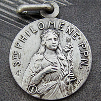 1900年代初期頃に製作された、聖フィロメナのとても美しいレリーフが印象的なアンティークメダイです。