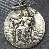 1900年代初期頃に製作された、とても美しい聖母子像のレリーフが印象的なアンティークメダイです。