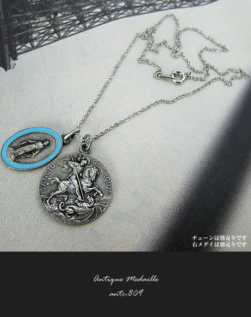 写真のチェーン、右のメダイは別売です。