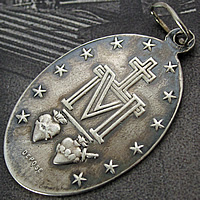 1900年代初期頃に製作された経年により燻された質感が印象的なアンティークの不思議のメダイです。
