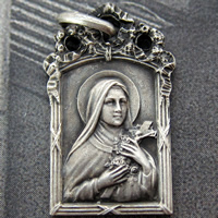 聖テレーズが印象的なアンティークメダイです。裏面には
