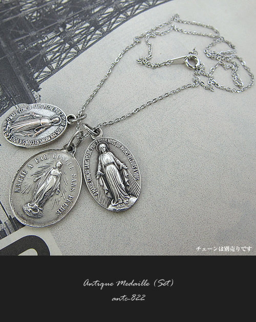1900年代初期頃に製作された、不思議のメダイのアンティークメダイ3点セットです。