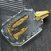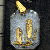 、アクリル製のフレームの中に、ルルドの聖母出現のレリーフがゴールドカラーで色づけが施された、珍しいアンティークメダイです。