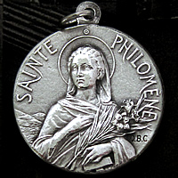 1900年代初期頃に製作された、聖フィロメナのとても美しいレリーフが印象的なアンティークメダイです。