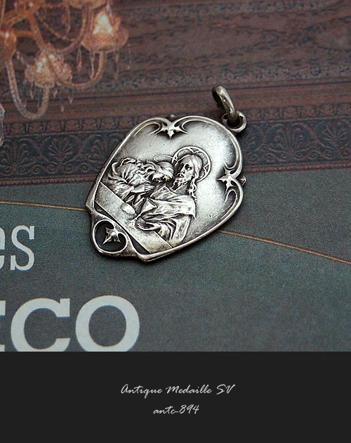 とても丁寧でかつ美しいレリーフが印象的なシルバー製のアンティークメダイです。