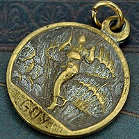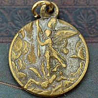 フランスの世界遺産「モンサンミッシェル」で見つけた大天使ミカエルをモチーフにした、経年により燻されたゴールドカラー(真鍮?)の素材が印象的なアンティークメダイです。