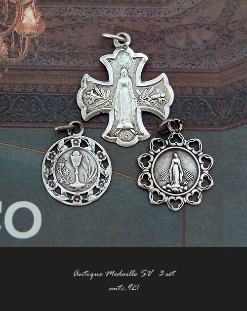 1900年代初期頃に製作された、シルバー製のアンティークメダイ(3点セット)です。