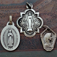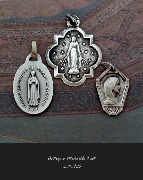 1900年代初期頃に製作された、アンティークメダイ(3点セット)です。中央のメダイはシルバー製です。