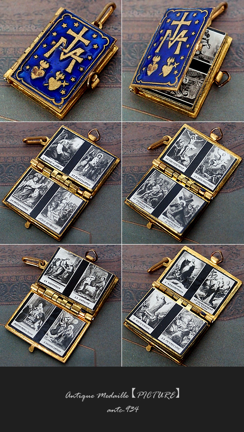 表紙には不思議のメダイの裏面にも描かれている絵柄が描かれています。青い部分は七宝(エマイユ)です。