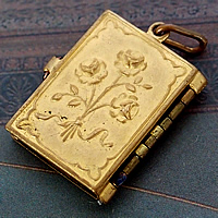 1900年代初期頃に製作されたブックデザイン(16枚の絵が描かれています)のアンティークメダイです。