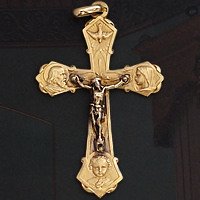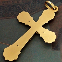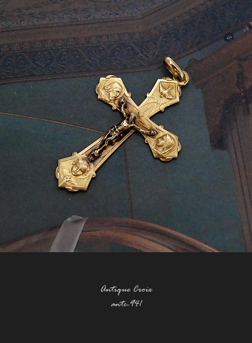 1900年代中期頃に製作された、クロス全体に描かれた非常に繊細なレリーフが印象的な18金コーティング製(ORIA刻印)の