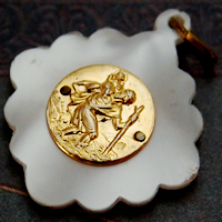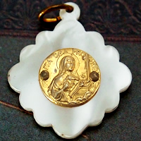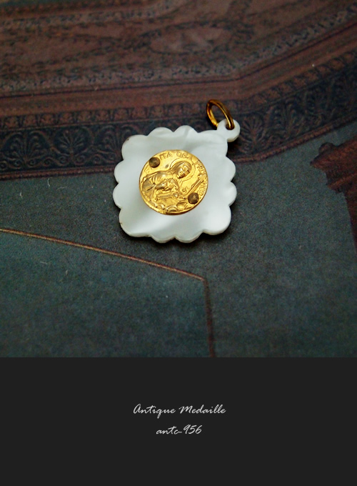 のフレームが印象的なアンティークメダイです。