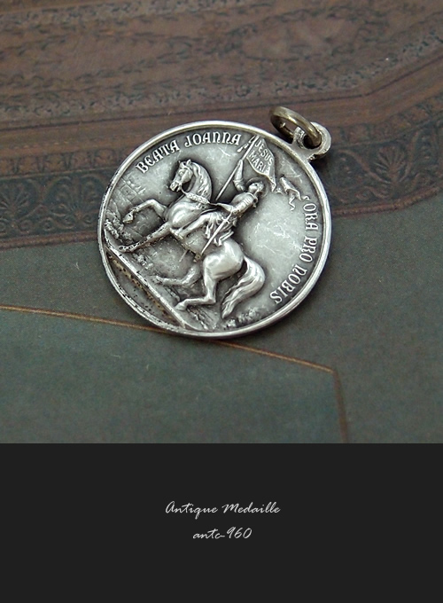 1900年代初期頃に製作されたフランスの国民的英雄であり、聖女でもある「ジャンヌ・ダルク」が描かれたアンティークメダイです。