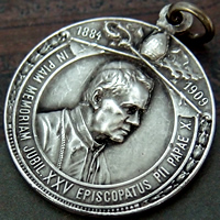 にローマ教皇ピウス10世によるジャンヌ・ダルクの列福の記念メダイである事がうかがえます。