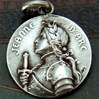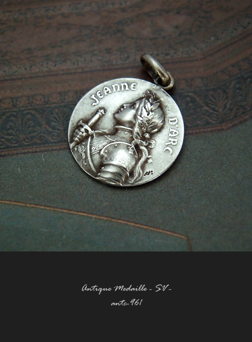 1900年代初期頃に製作されたフランスの国民的英雄であり、聖女でもある「ジャンヌ・ダルク」が描かれたシルバー製のアンティークメダイです。