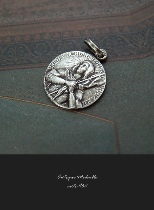 1900年代初期頃に製作されたフランスの国民的英雄であり、聖女でもある「ジャンヌ・ダルク」が描かれたアンティークメダイです。