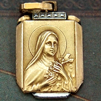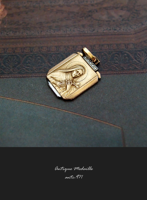 1950年頃に製作された、聖テレーズ(聖テレジア)のゴールドコーティング(FIX刻印)製のアンティークメダイです。