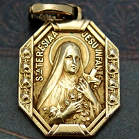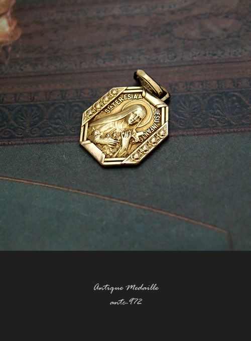 1900年代中期頃に製作された、聖テレーズ(聖テレジア)のゴールドコーティング(ORIA刻印)製のアンティークメダイです。