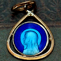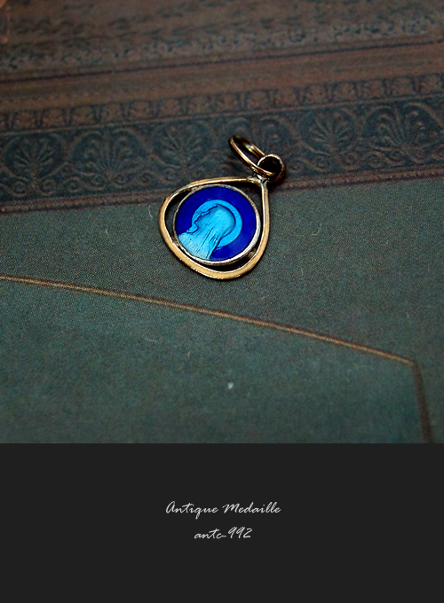 聖母マリア(裏面は聖地ルルド)が印象的なアンティークメダイです。