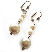 グリーン色のパール調ビーズをメインに使ったエレガントなピアスです。同シリーズのネックレスやブレスレットと一緒にコーディネートすると素適です。