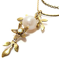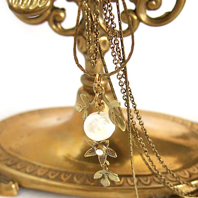 淡水パールとお花モチーフのチャームがとってもキュートな【Eric et Lydie】の2連ネックレスです。異なる種類のチェーンを2連で組み合わせています♪