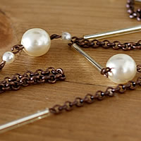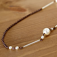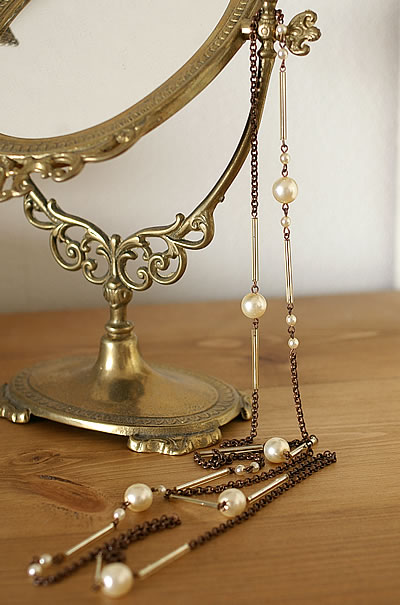 パールビーズとチューブ状のパーツの組み合わせがとても素敵な【NADINE DELEPINE】のロングネックレスです。留め具は無いタイプです。