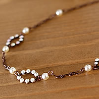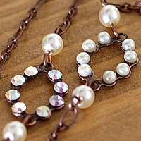 パールビーズとラインストーンの組み合わせとても素敵な【NADINE DELEPINE】のロングネックレスです。リング状に並べられたパールビーズとラインストーンがとても可愛いですね♪