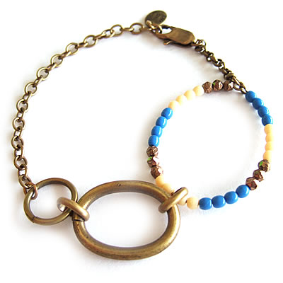 チェーンが連なった【Médecine Douce】のブレスレットです。3色のビーズが連なったリングがポイント。フランスらしいデザインで魅力的です。