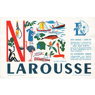 現在も百科辞典などを出版しているLAROUSSE社のビンテージビュバーです。AからZまでアルファベット別にイラスト入りのビュバーが存在します。