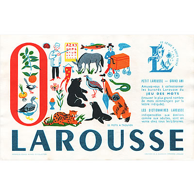 現在も百科辞典などを出版しているLAROUSSE社のビンテージビュバーです。AからZまでアルファベット別にイラスト入りのビュバーが存在します。