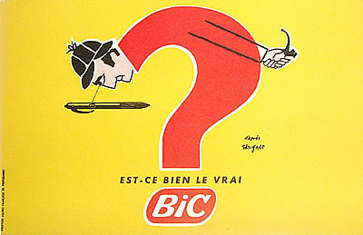 サヴィニャックのデザインで有名なBICのビューバーです。黄色の発色はとてもきれいなのですが、残念ながら顔のあたりに上から半分に渡って縦に薄い折り目が入っております。
