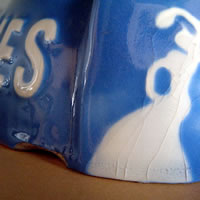 Gitanesの灰皿(1950年代)です。残念ながら、使用されていたものの様で、カケがあり、全体的に色あせ・貫入が入っています。遠めで見る分には問題はなく、小物入れや、ディスプレイとして楽しんで下さい!(貫入とは、器を窯で焼くときに、土と釉の伸縮率の差から生まれるヒビの事。↓画像参照)