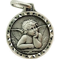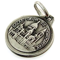 パリの教会で見つけたフレームに施されたカッティングが素敵なエンジェルのメダイです。裏側にはモンマルトルのサクレクール寺院が描かれています。
