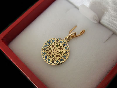パリのノートルダム大聖堂のステンドグラス(通称:バラ窓)をモチーフにした18金製のペンダントチャームです。