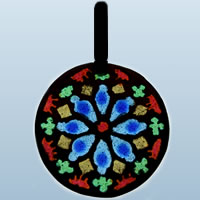チャームを空(光)にかざすと、本物のステンドグラスの様に薔薇窓が綺麗に浮かび上がります(下写真参照)。