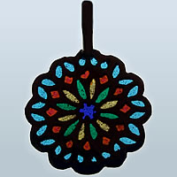 チャームを空(光)にかざすと、本物のステンドグラスの様に薔薇窓が綺麗に浮かび上がります(下写真参照)。