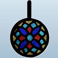 チャームを空(光)にかざすと、本物のステンドグラスの様に薔薇窓が綺麗に浮かび上がります(下写真参照)。