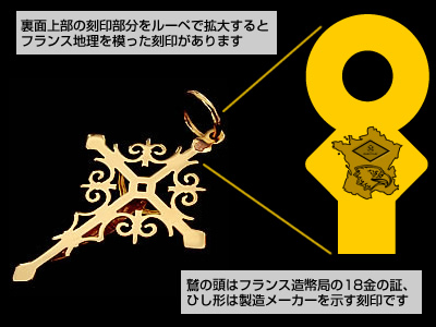 のクロスペンダントです。裏面上部に刻印(鷲の頭とメーカーズマークが連なっています)があります。