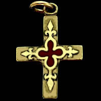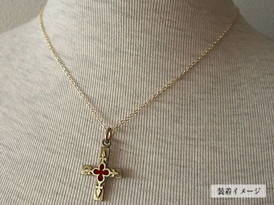 パリの教会で見つけた中央の深紅のアクセントによる可愛いクローバー柄とユリの紋章が印象的なブロンズ製のクロスチャームです。