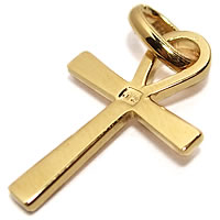 パリの教会で見つけたK18コーティング製(裏面に刻印有り)のクロスチャームで、古代エジプトでは幸運を導くと信じられ、長寿のお守りにもされていました。