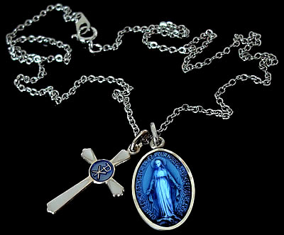 パリで見つけた【不思議のメダイ】のシルバー925製×ブルーエナメル/Lサイズのメダイです。