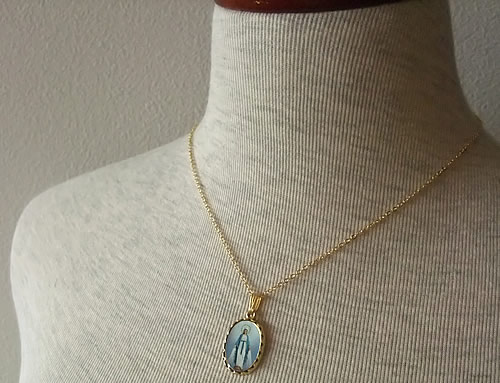 パリの奇跡のメダイ教会【CHAPELLE NOTRE DAME DE LA MEDAILLE MIRACULEUSE】で有名な【不思議のメダイ】のペイントタイプのメダイです。