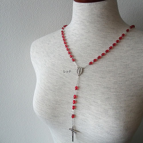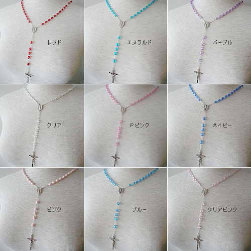 パリで見つけた鮮やかな9色のカラービーズが素敵なロザリオネックレスです。連結部分には「不思議のメダイ/奇跡のメダイ」のモチーフが施されています。