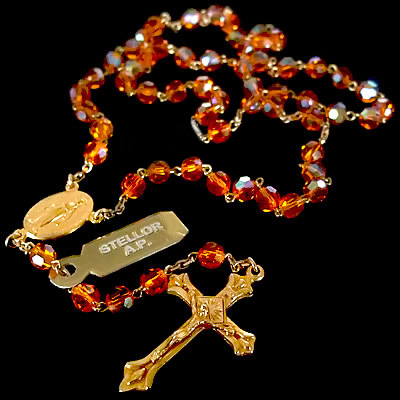 フランスで見つけた光り輝くオレンジの【スワロフスキー】ビーズと18Kコーティング製の素敵なロザリオです。在庫1点限りです。