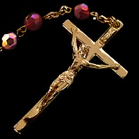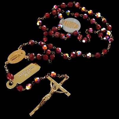 深紅の【スワロフスキー】ビーズと18Kコーティング製の素敵なロザリオです。