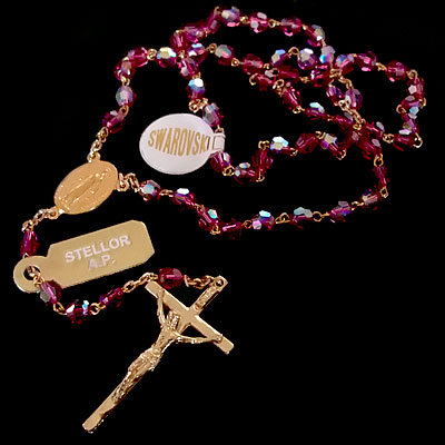パープルの【スワロフスキー】ビーズと18Kコーティング製の素敵なロザリオです。